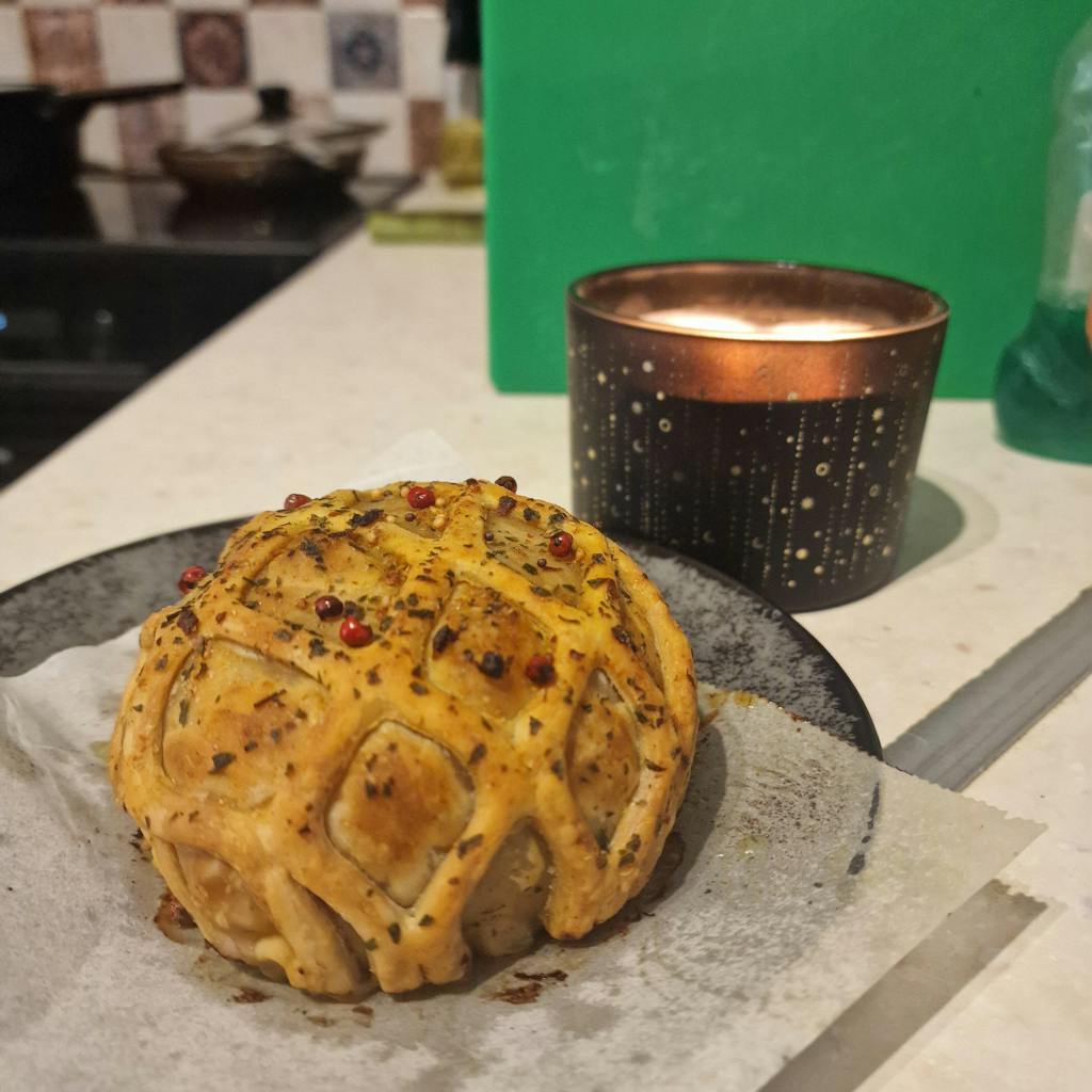 ✔️ Le tout enveloppé dans une pâte feuilletée faite à la main qui devient dorée et croustillante à la cuisson