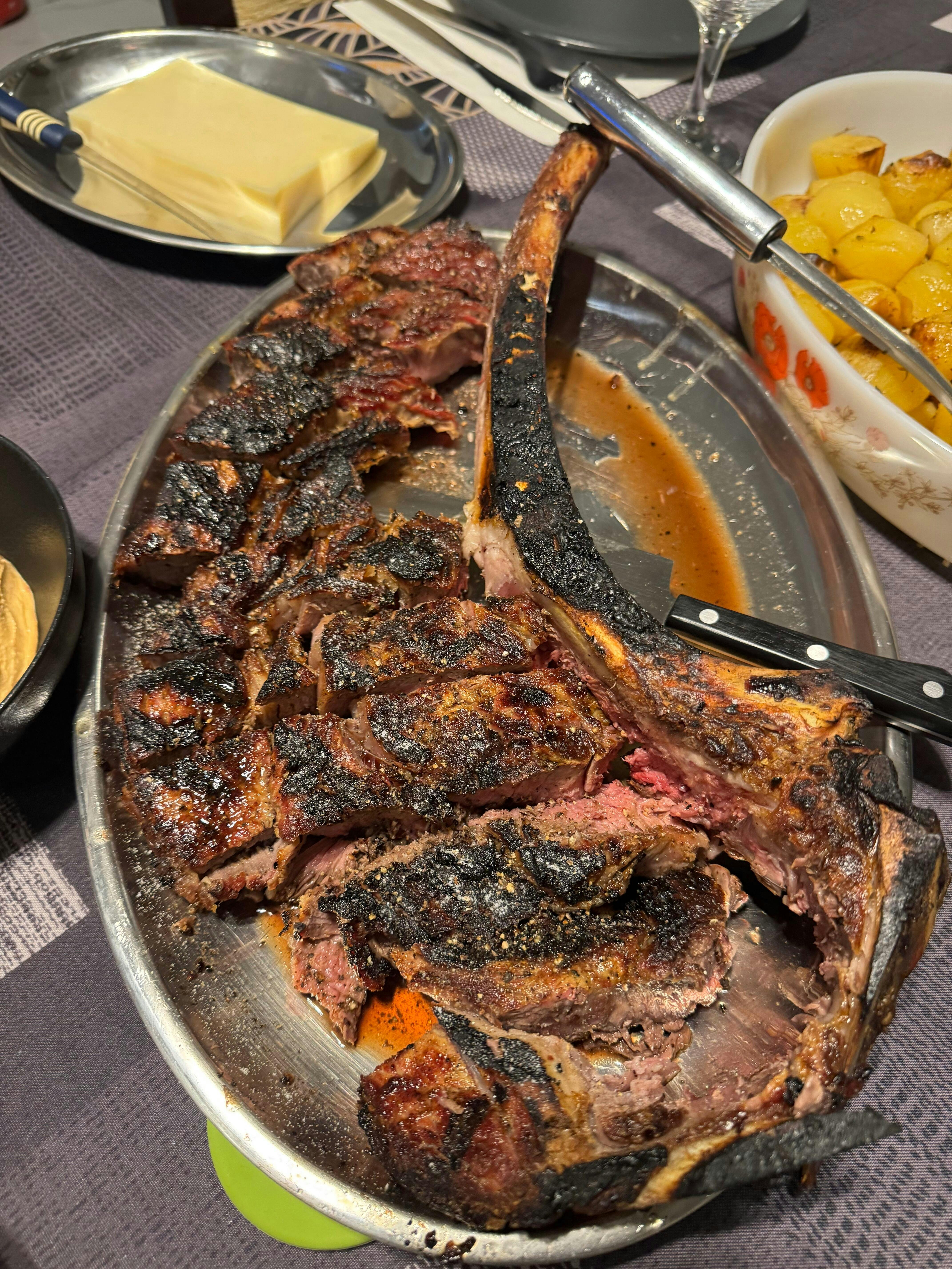 Le steak Tomahawk est une coupe de bœuf qui contient cinq pouces ou plus d'os supplémentaires pour la présentation. On l'appelle « tomahawk » parce que le steak à os long ressemble à une hache.